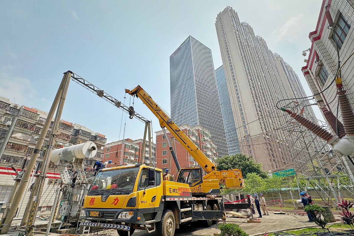 4月11日,在泉州市区大淮变2号主变施工现场,施工人员正紧锣密鼓开展技改大修。该项目为迎峰度夏技改工程,完工后将提升大淮变电站安全可靠性和供电能力。